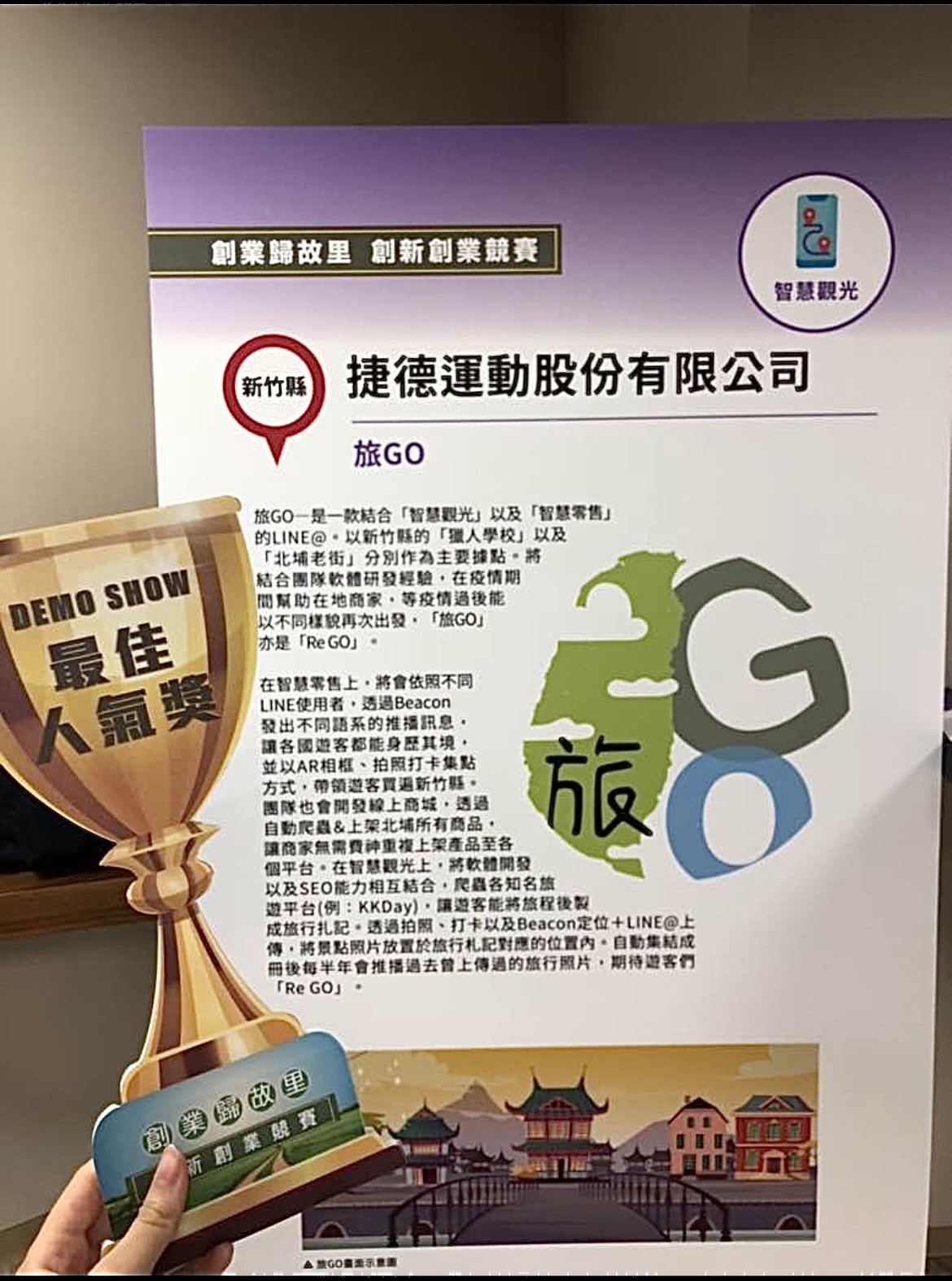 捷德運動——以 GOLFOURIT 高球大師的 LINE球場天氣/球隊管理功能為高球圈注入新活血,吸引球友與球隊加入。以台灣最大高球LINE 群做為號召吸引更多球友關注,透過LINE+Mobile APP等平台傳遞資訊,讓球友使用起來更為方便。以高端客戶作為平台基礎,衍伸為商機,快速在高球界嶄露頭角,也埋下了平台模組化的基礎,為往後事業打下扎實的根基。